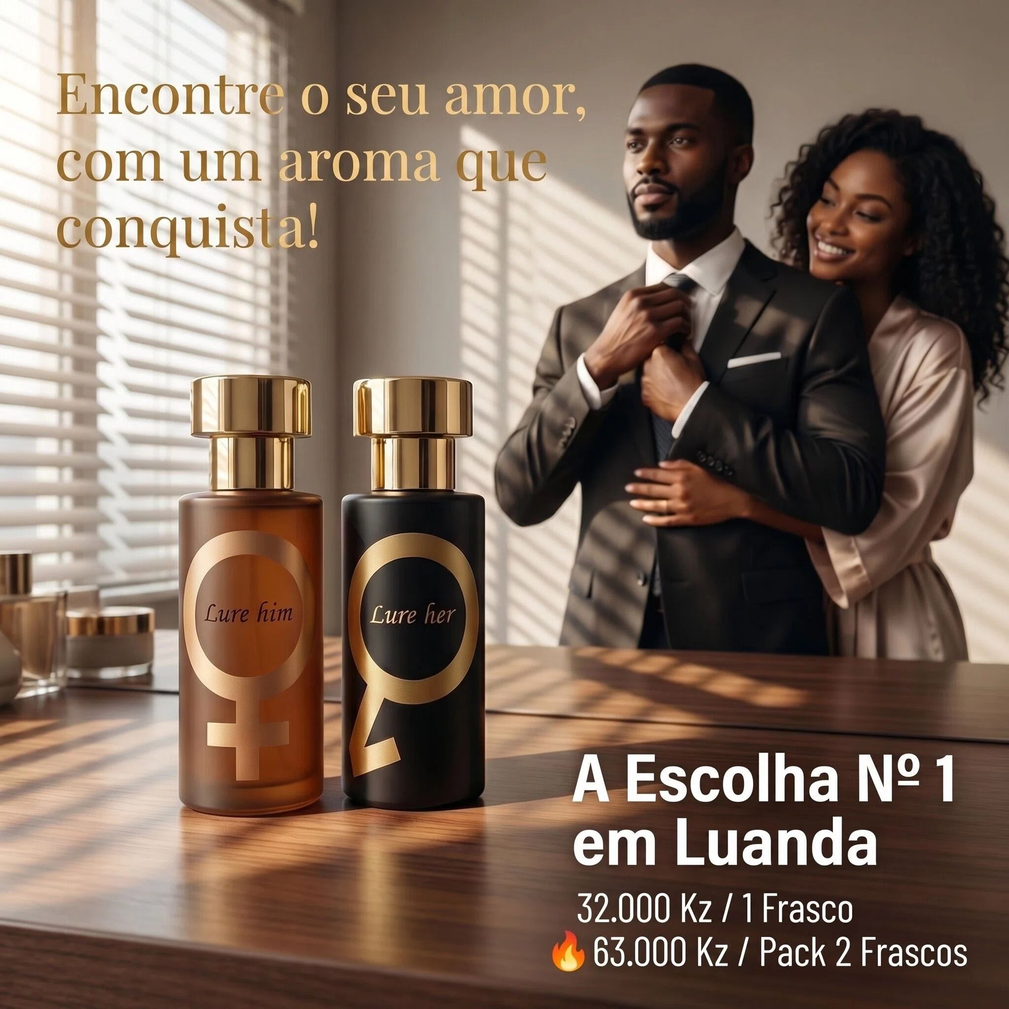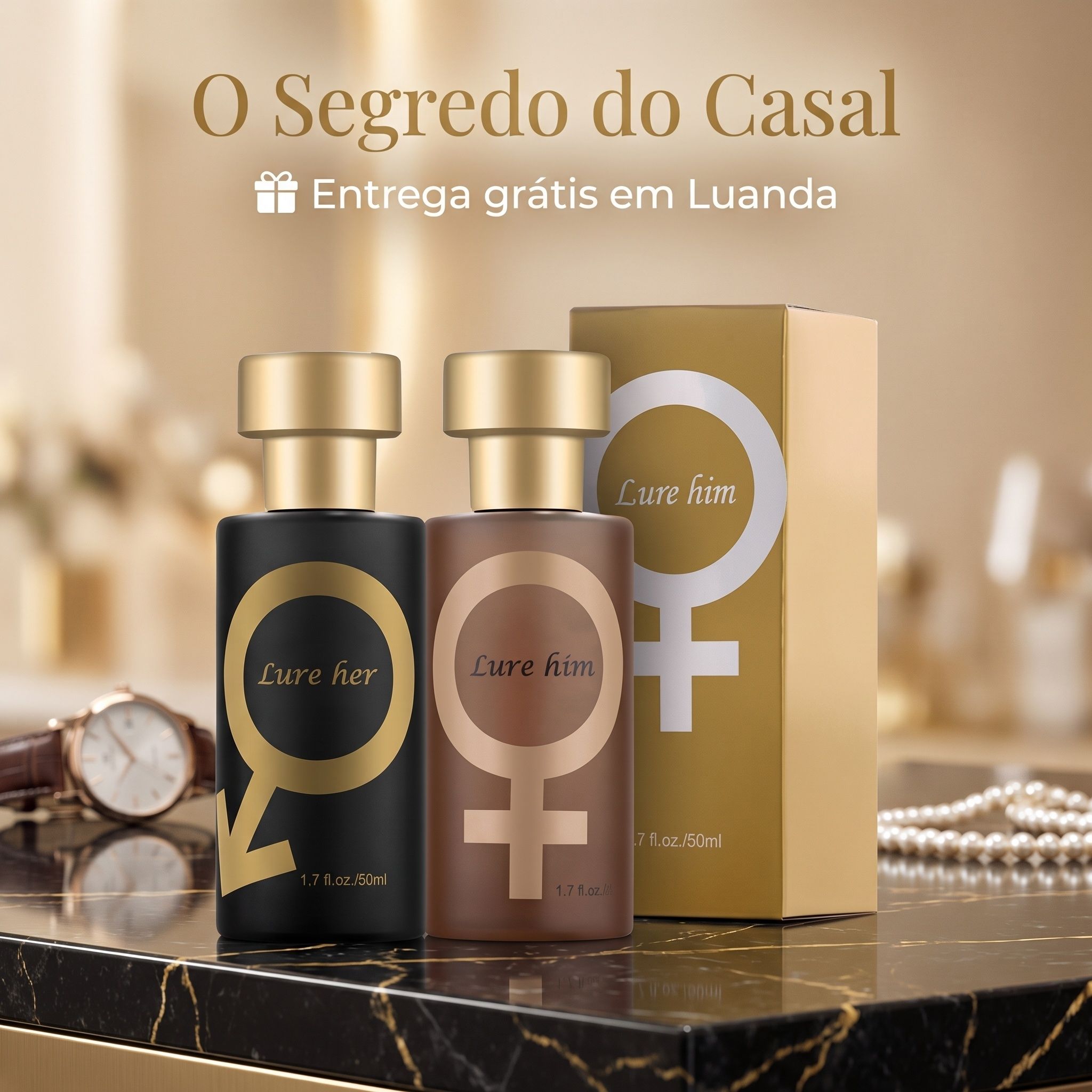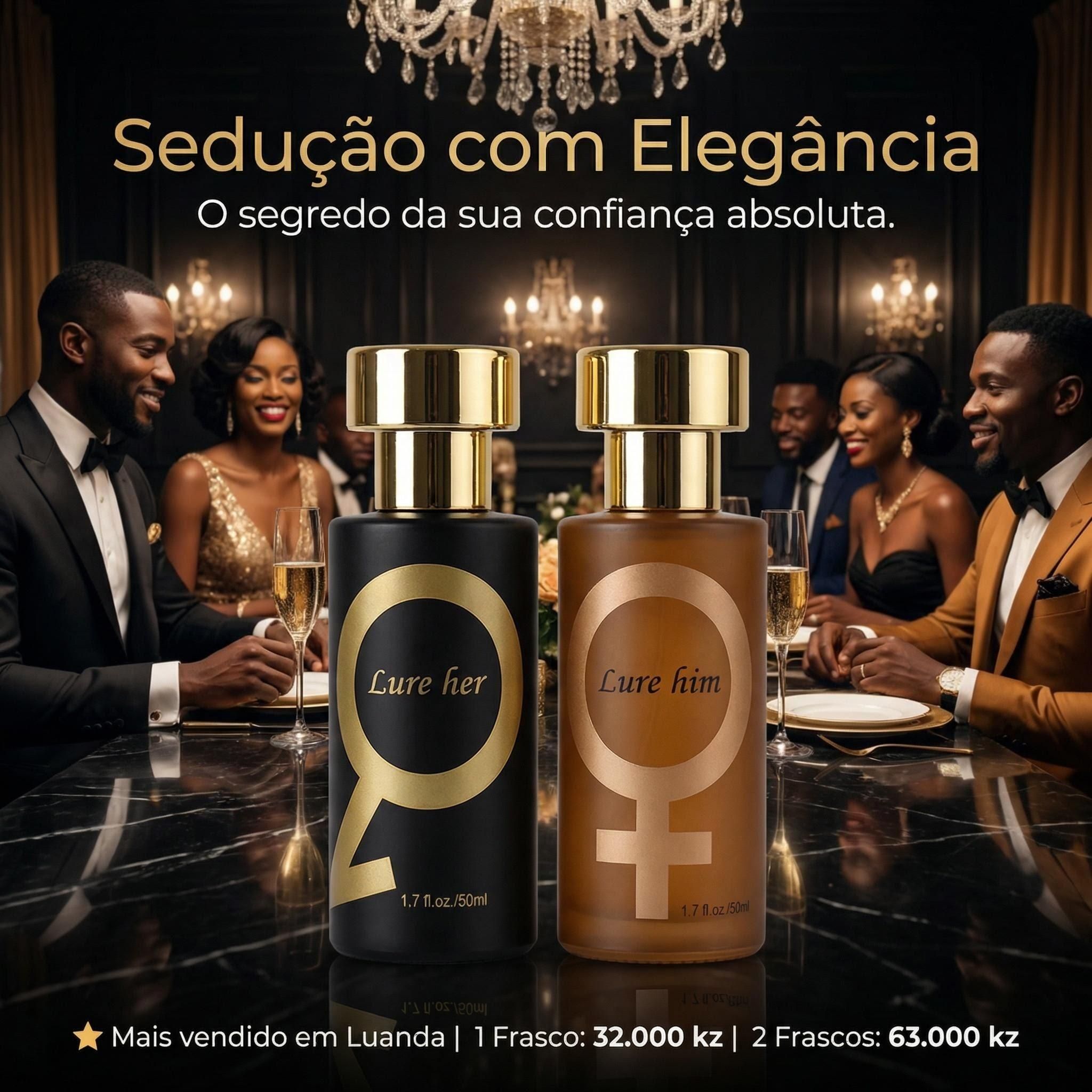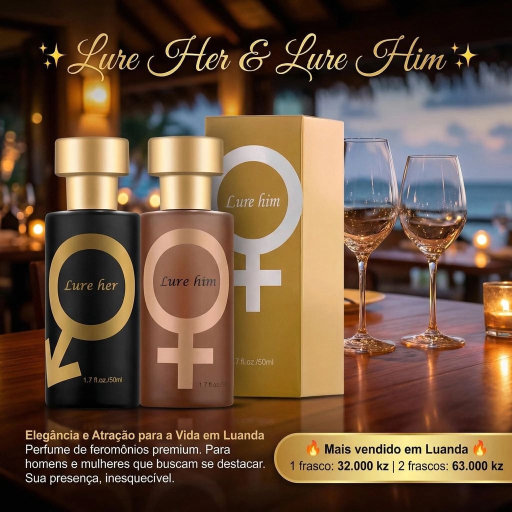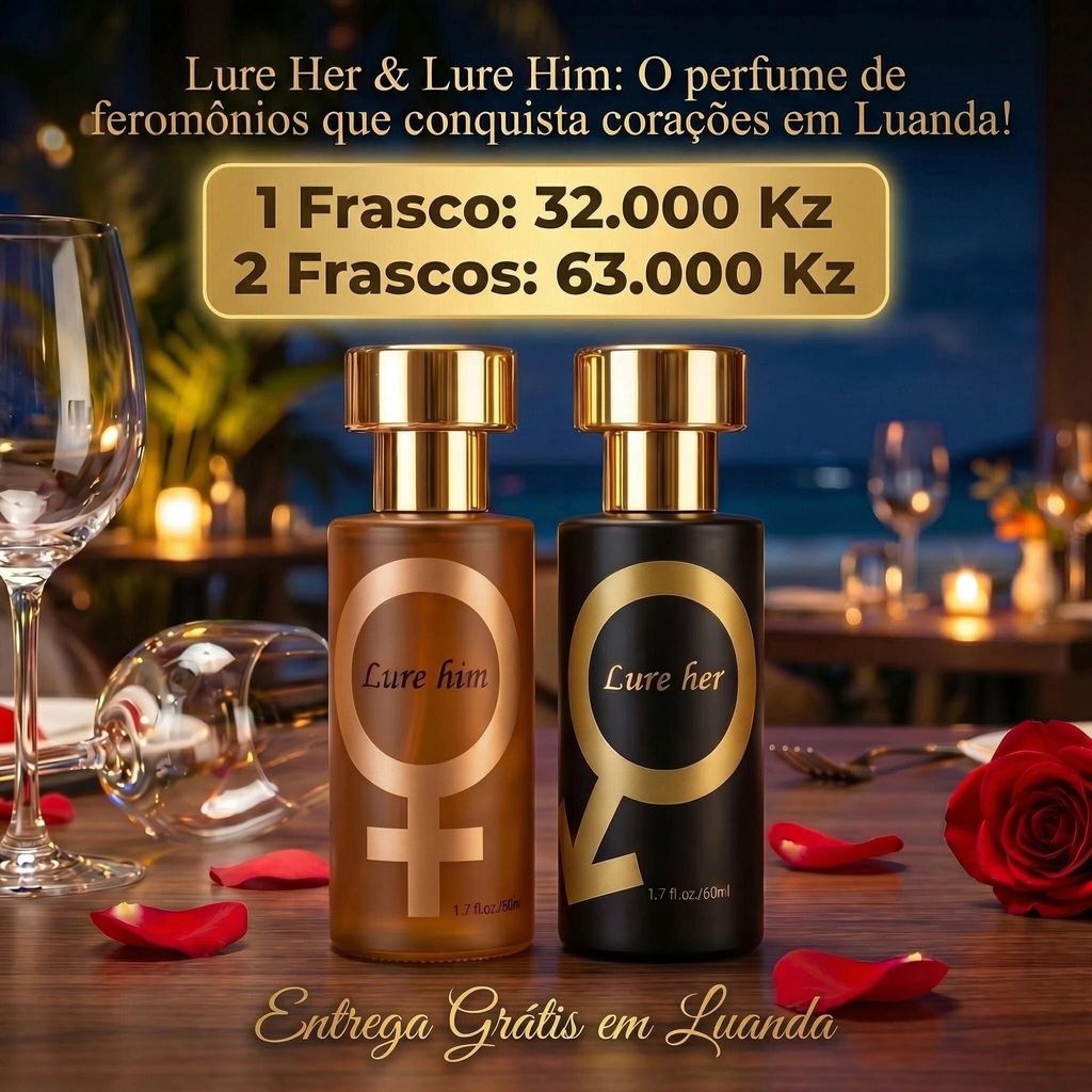 ✨Kit Perfume Feromônios Lure Him & Lure Her 50ml | Fragrância Floral Feminina + Madeirada Masculina | Entrega Gratuita Luanda 🚚 | Pagamento na Entrega COD 💵